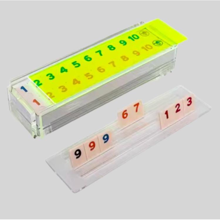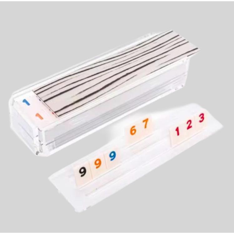 Factory Custom Judaica Rummy Game Tiles Set Lucite Cube Rack Travel Tiles Board Game Rummy Card Fast Moving Acrylic Rummy Game