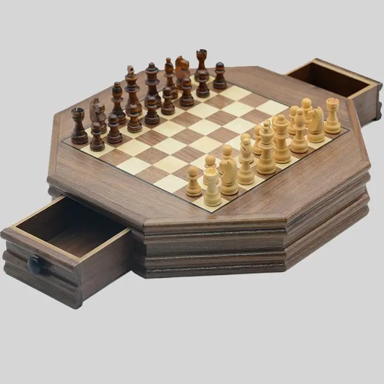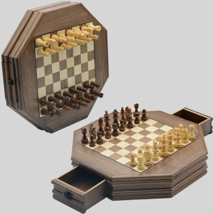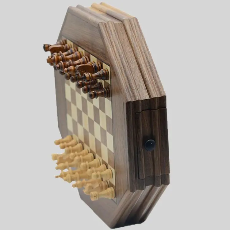 Factory Direct Sales Octagonal Wooden Chess Set Magnetic 35*35*6.5cm Chess Portable Chess Games