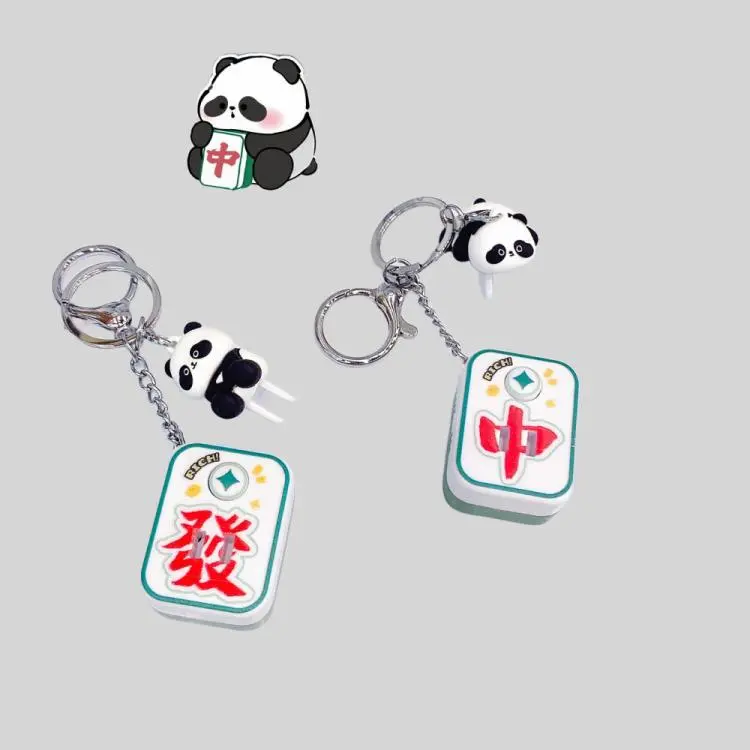 This durable PVC keychain features a charming Mahjong Panda design, printed with a variety of techniques including UV printing, offset printing, and more. Perfect for decoration, promotion, or as a unique gift. Customizable logo options available!