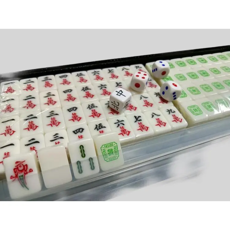 This exquisite mini mahjong set, made with melamine/acrylic, is ideal for travel or as a unique gift. Available in white/ivory or custom colors. Features laser engraving and custom artwork options. Perfect for sale, promotion, or family game nights.