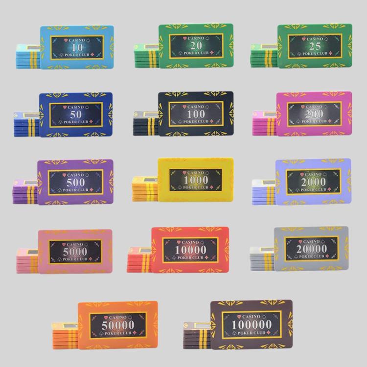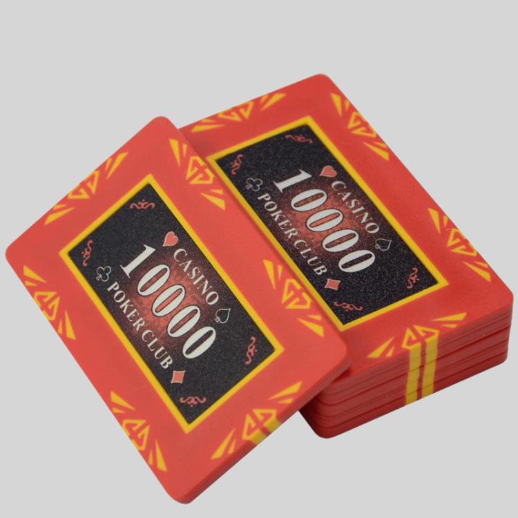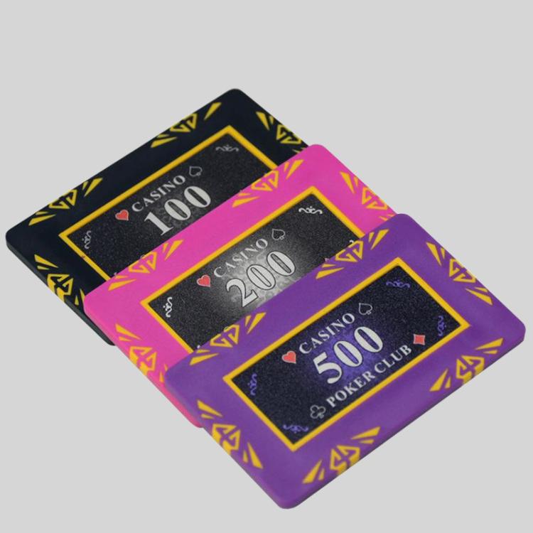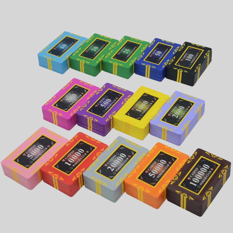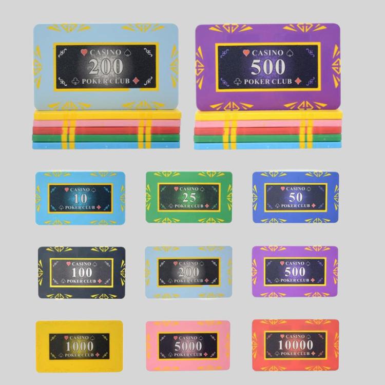 This set of rectangular ceramic chip coin blackjack poker game set includes chips and coins perfect for Texas Hold'em, Baccarat, Mahjong, and Landlord. Featuring a durable ABS material and detailed silicone/laser printing, these chips offer a premium gaming experience.