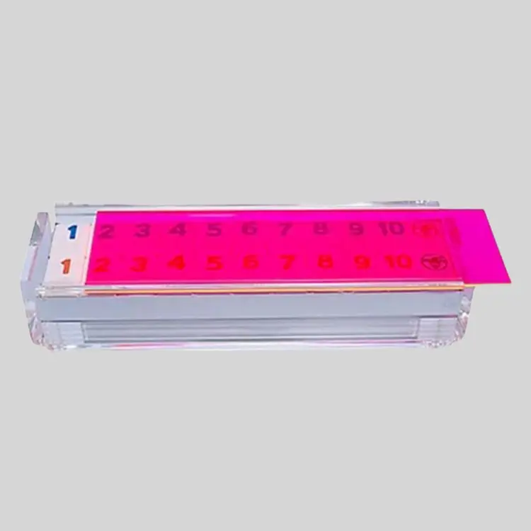 This durable Rummy Set, featuring 106 tiles, is made from acrylic (PMMA/Lucite/Plexiglass). It's a foldable and waterproof game designed by Yuda (SF-0910). Available in various colors (Green, Red, Clear, Pink, Orange, Black) and customizable with UV printing, silk screen, or engraving. MOQ: 50pcs. Perfect for Turkish Rummy and Mahjong fans!