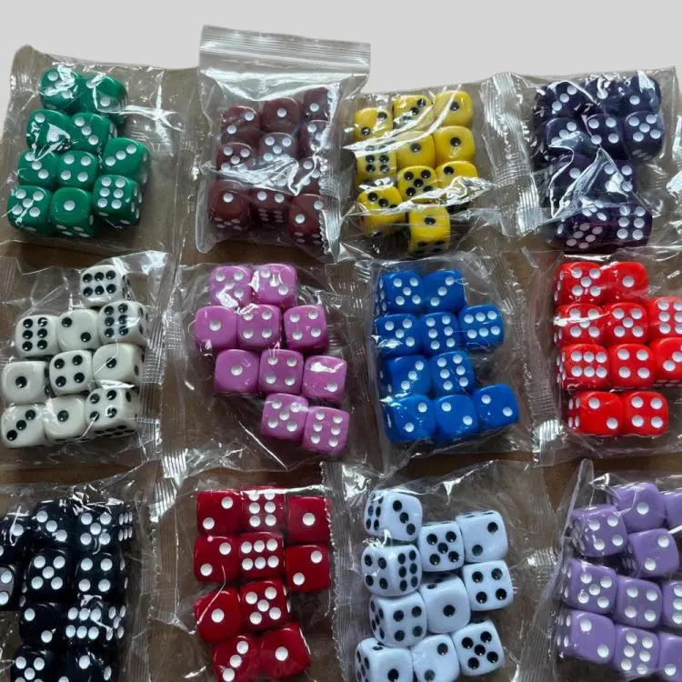 Set of 10 acrylic dice, perfect for games, bars, and parties. 16mm polyhedral dice in multiple colors. Great for board games, pub nights, and more!