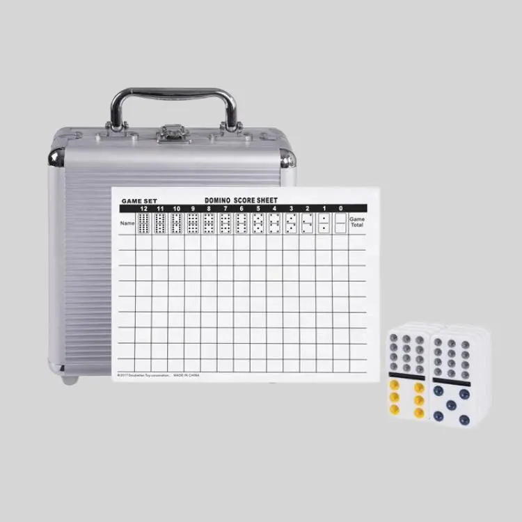Experience the classic Mexican Train domino game with this antique-style set! Featuring 12 colored dots and presented in a stylish aluminum case, it’s perfect for family fun or casino entertainment.