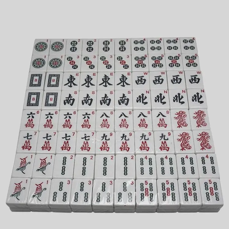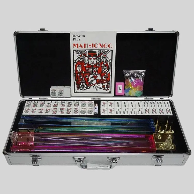 This 166-piece Western American Mahjong set boasts a stylish acrylic/melamine construction. Featuring a compact 30*22*13mm size and available in white or custom colors. Each set comes with a luxurious packaging option including an Aluminum Box, Burgundy Bag, or custom case.