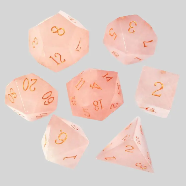 Custom Natural Gemstone Dice Polyhedral Gemstone DND RPG Dice Set RPG Stone Dice for MTG Table Games Pink Crystal